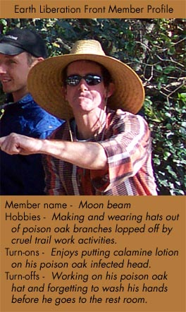 "Earth Liberation Front" (ELF) protest at one of our last trail work events. We also have some pictures with a